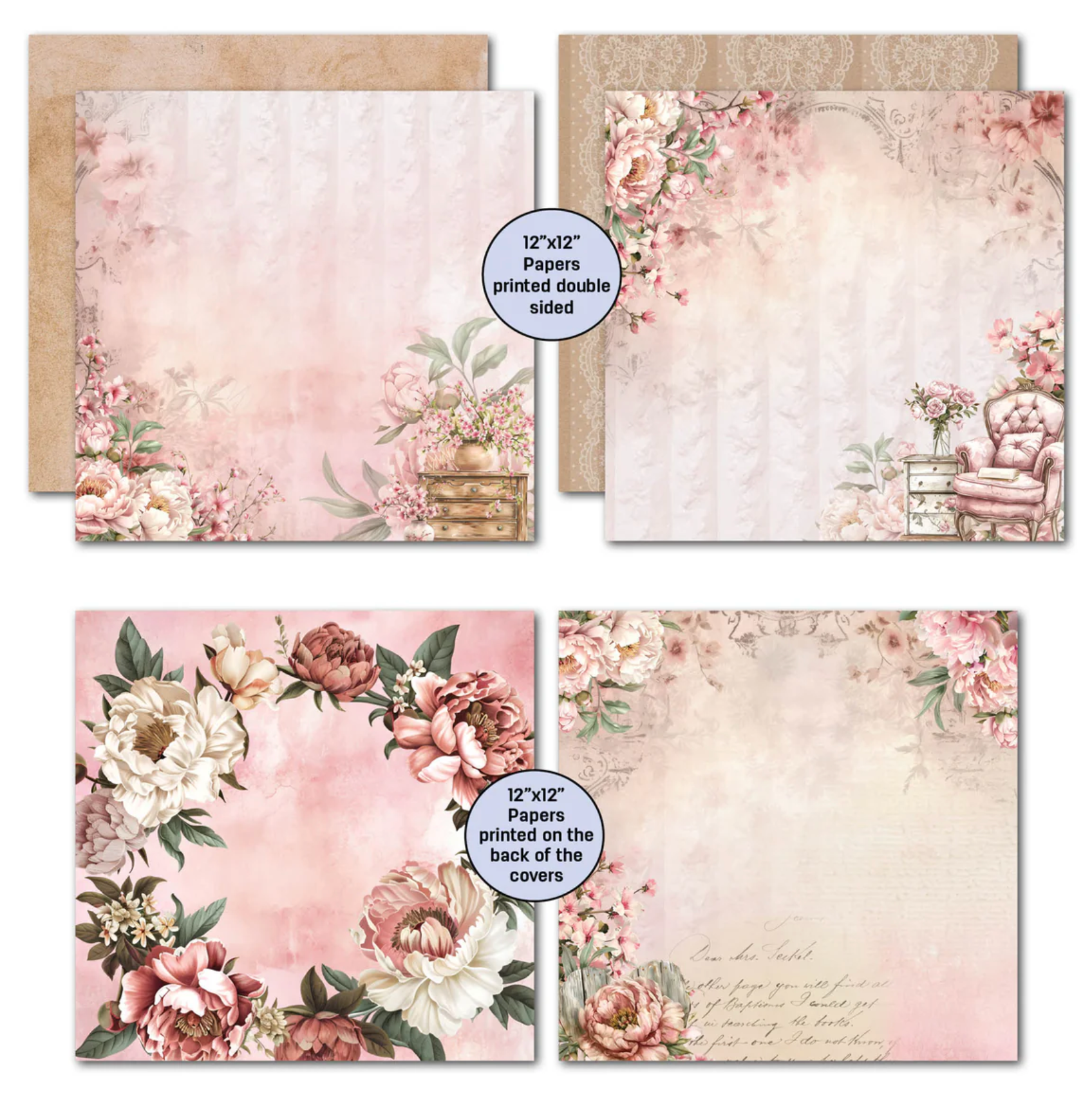 Discover the expertly curated Blossoming Peonies Collection featuring a delicate pink palette, with lace accents and a touch of vintage charm. Showcasing beautiful peonies and adorned with fluttering butterflies and graceful dragonflies, this collection is perfect for creating timeless and elegant projects.