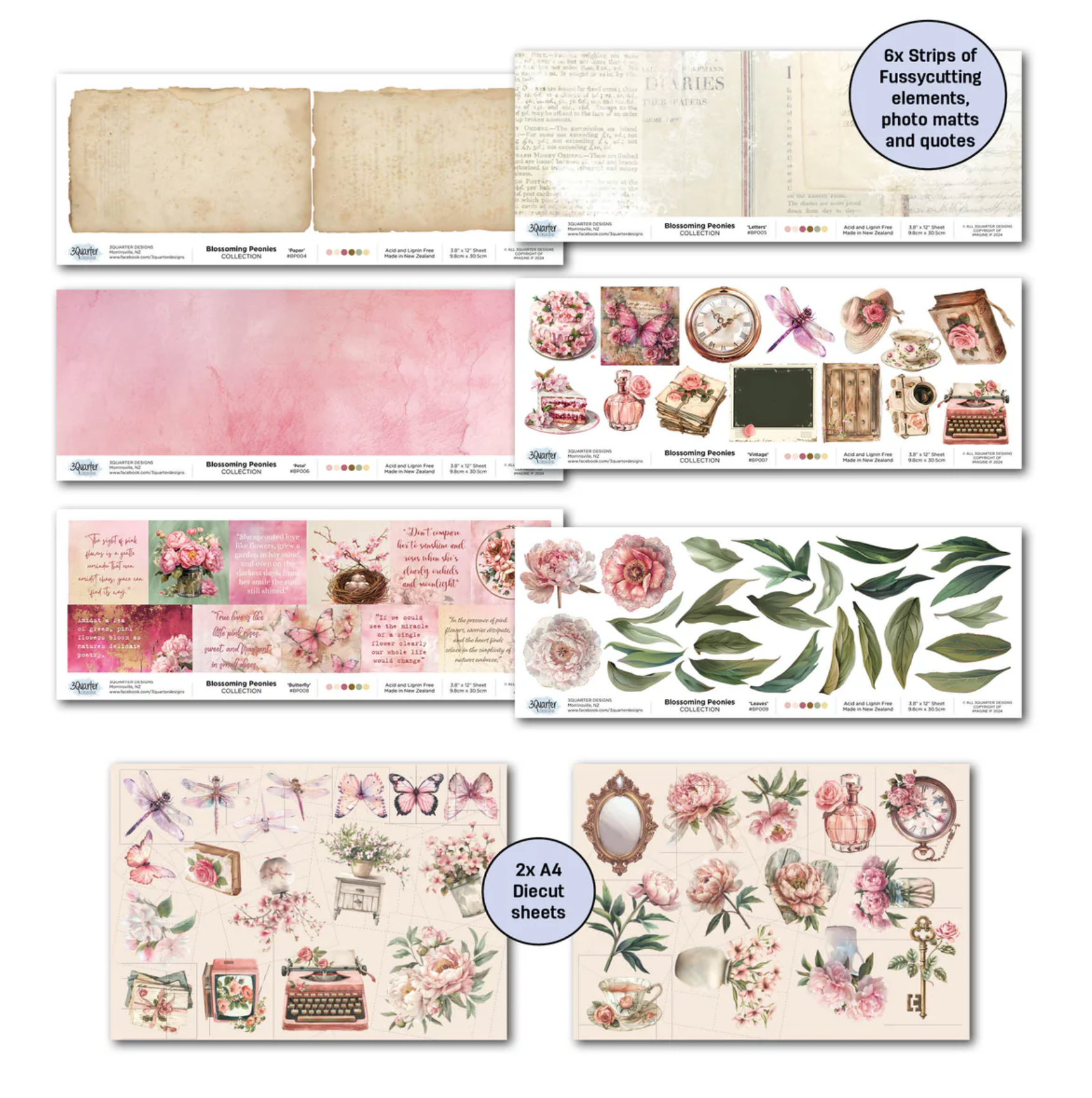 3Quarter Designs Blossoming Peonies 12x12 Design Paper & Diecuts Set
