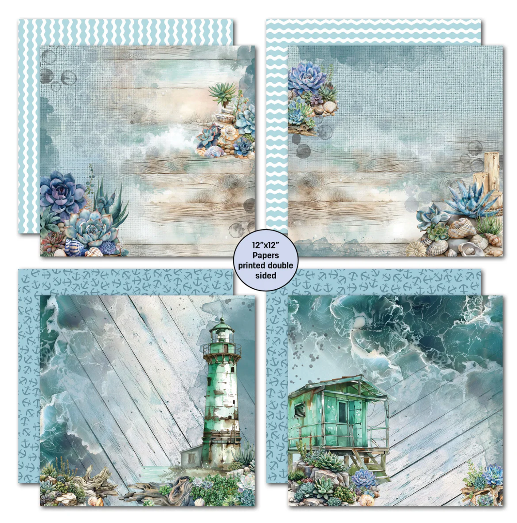 3Quarter Designs Coastal Boardwalk 12x12 Design Paper & Diecuts Set