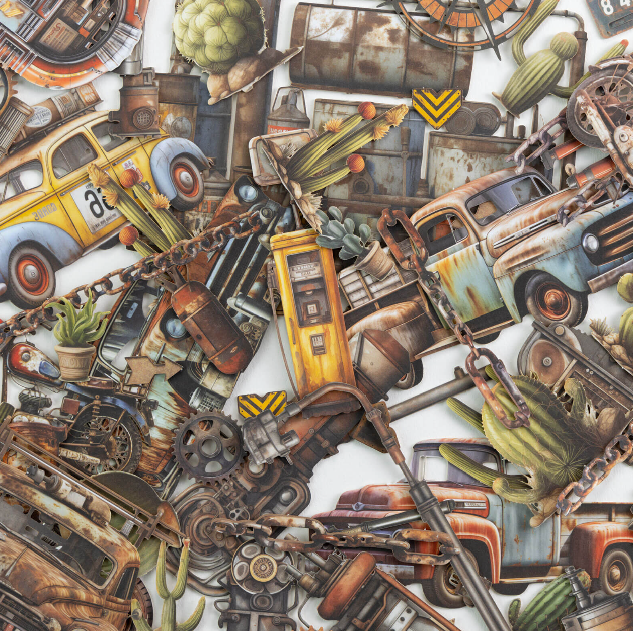 The Rust & Revs laser-cut set is a treasure trove for vintage enthusiasts and scrapbookers alike. Each piece is precision-cut with intricate detail, capturing the spirit of a bygone era. The collection captures the romance of vintage cars and the rugged beauty of the desert landscape. Its warm, earthy tones and nostalgic imagery create a timeless aesthetic that appeals to scrapbookers and vintage enthusiasts of all ages.