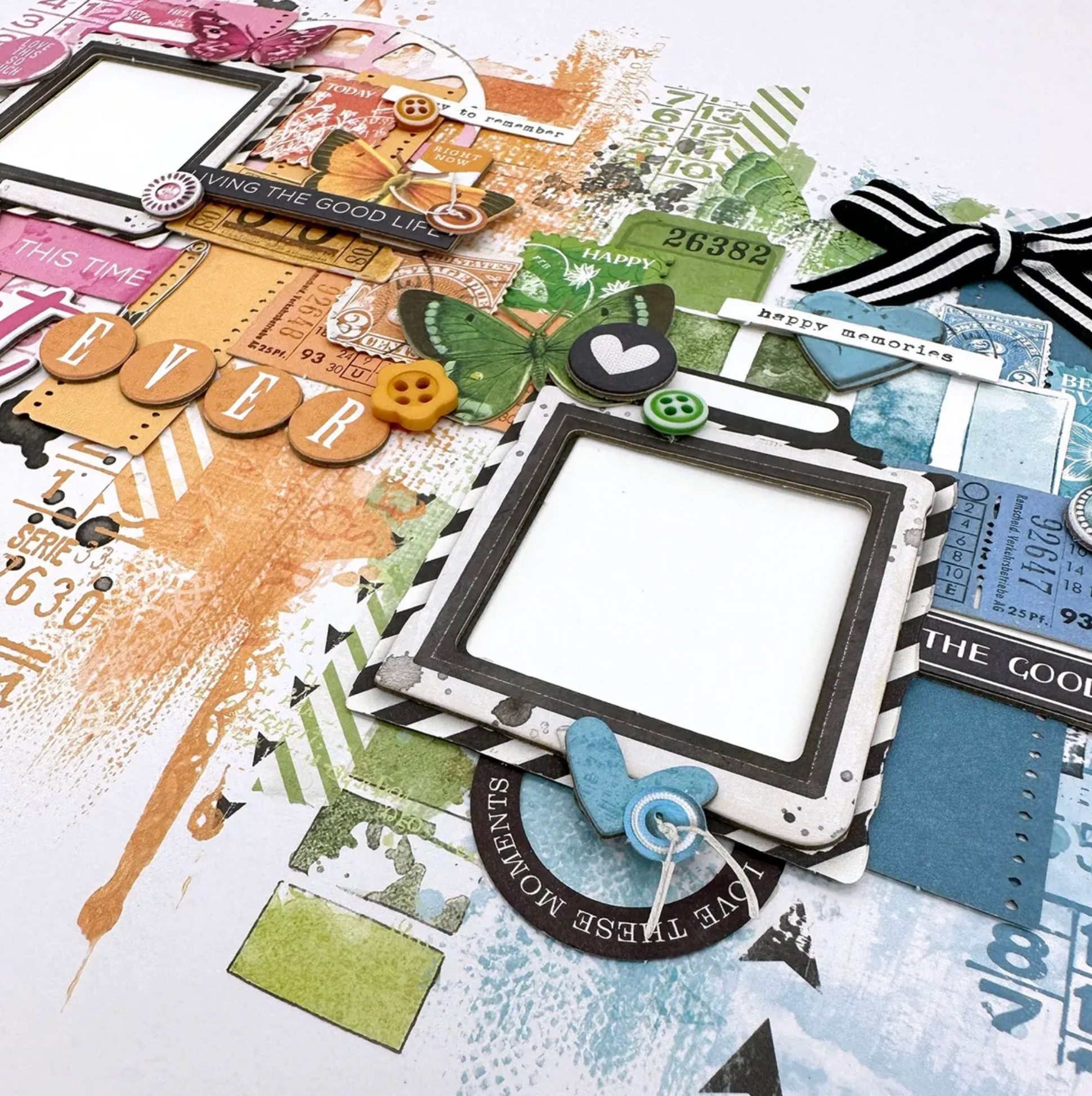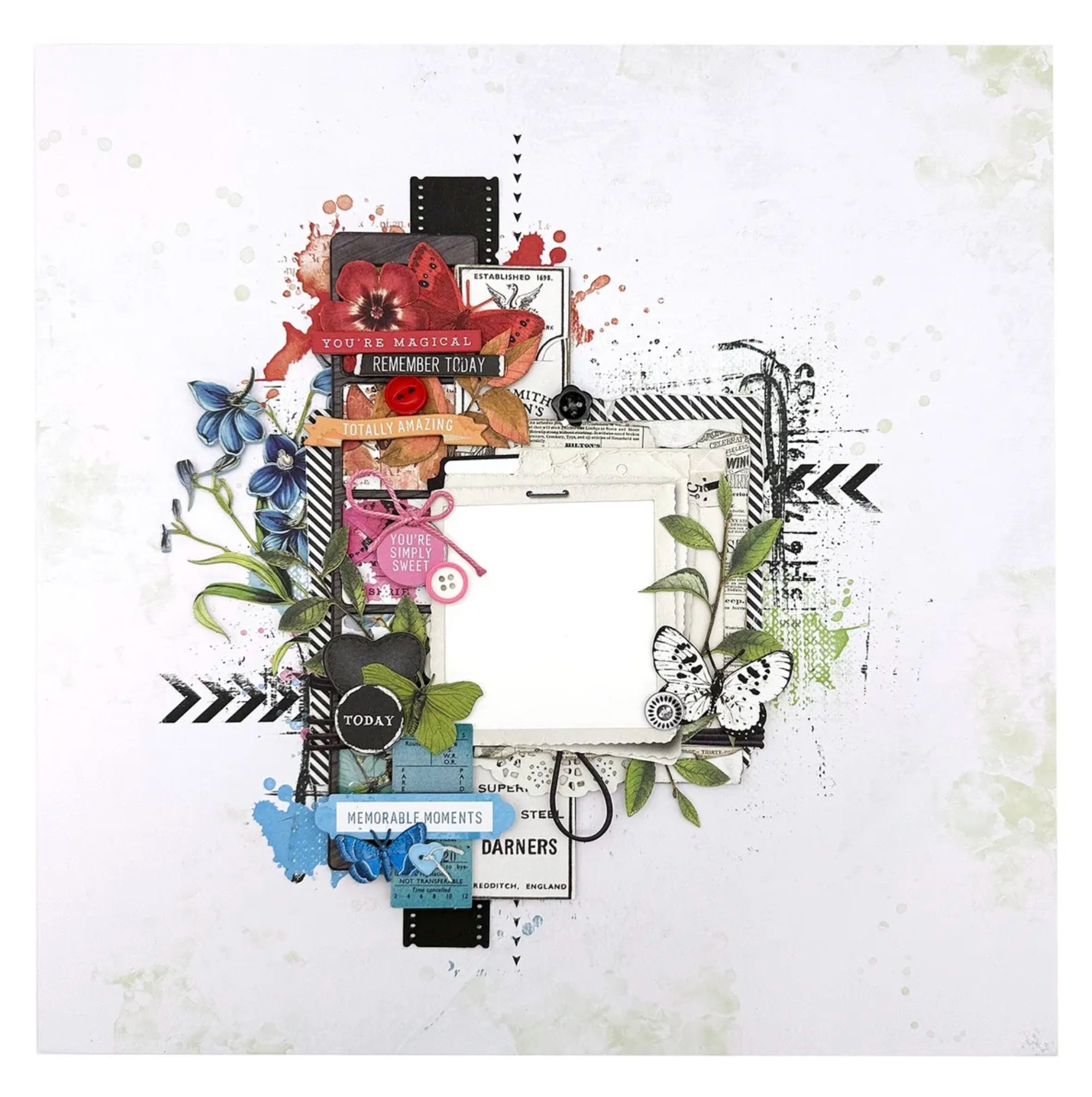 The Spectrum Gardenia Ultimate Page Kit includes the following pieces: Includes 4 exclusive sheets of 12x12 inch patterned papers; 4 sheets of 12x12 inch laser cut elements; 12x12 inch sheet of thin adhesive-backed chipboard shapes; 34 assorted buttons; 4 mini metal clips and 4 ribbon bows. Be inspired by completed project samples that can be replicated or make your own. Slight variations may occur. Imported.