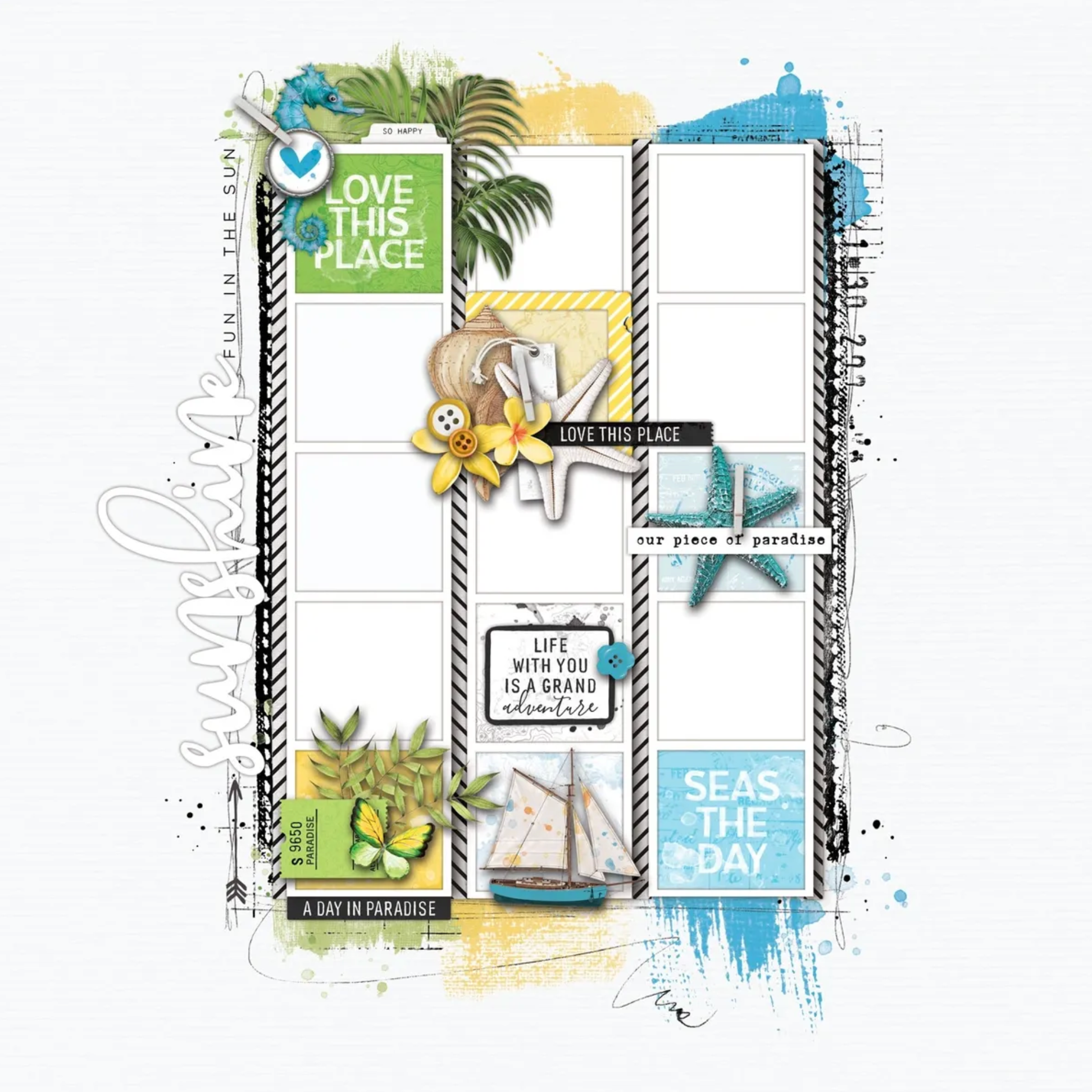 The Vintage Artistry Sunburst Ultimate Page Kit includes 4 sheets of exclusive 12x12 patterned papers; 4 sheets of 12x12 laser cut elements; 12x12 sheet of thin adhesive-backed chipboard shapes; 25 assorted buttons; 5 mini wooden clips; 2 mini metal clips; 3m of bakers twine; 2 bows and one sheet of enamel dots. Be inspired by completed project samples that can be replicated or make your own. Slight variations may occur.