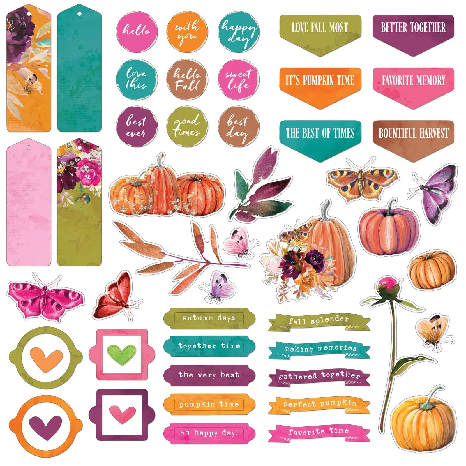 Spiced WIldflower Laser Cut Elements - An assortment of elements that include an array of wildflowers, stems, pumpkins and more! Each of these elements have been laser cut to perfection. The detailed intricacy of laser cut pieces bring projects to another level with ease. Imported