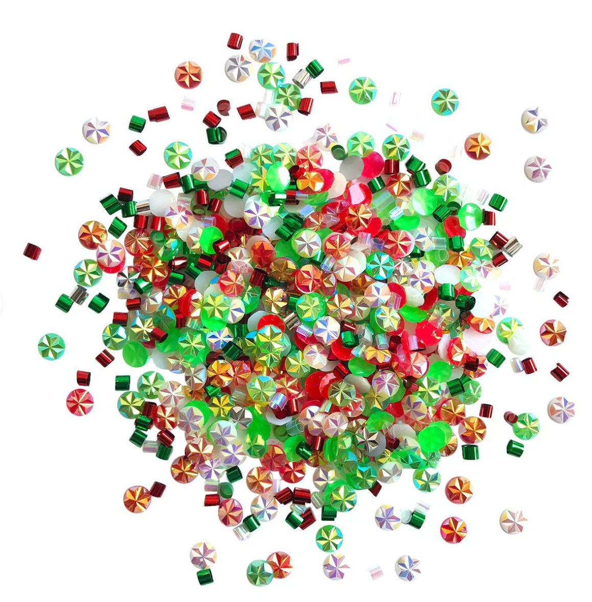 Cool Yule Christmas embellishment is part of our DooDadz collection of craft embellishments. These colorful mixes include sparkling bugle shapes and assorted jewels for DIY crafting. The jewels are flat on the back and feature a textured top. Use them to embellish any craft project including scrapbooks, greeting cards, cell phone cases, finger nails or as shaker filler. You will recieve about 10 grams of product.