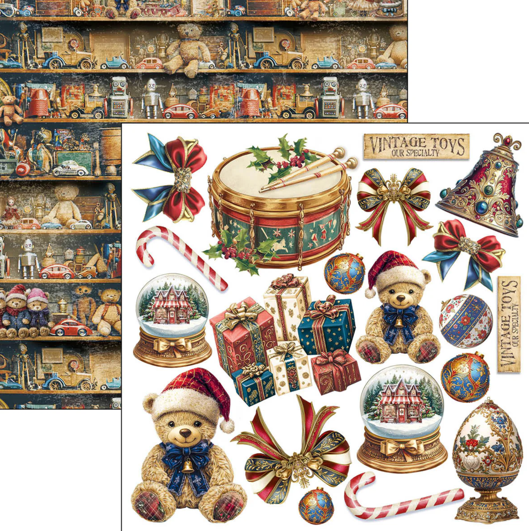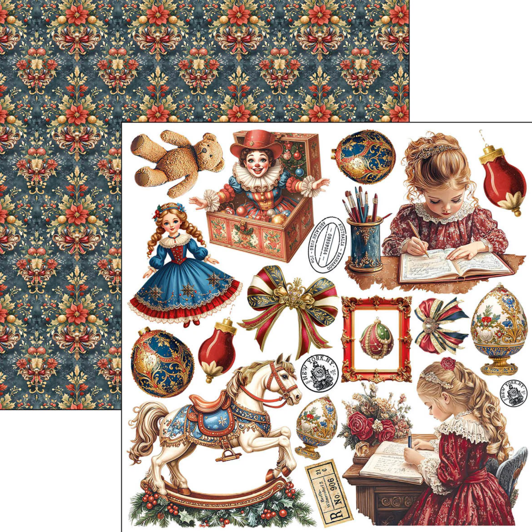 Step into a charming world where time stands still, and the magic of childhood comes alive through the warmth of vintage toys and nostalgic shop windows. “Toy Shop” brings to life the cozy, whimsical atmosphere of an old-fashioned toy store, filled with treasures that echo the joy and innocence of years gone by. The collection’s rich colors – deep bordeaux, serene blue, and soft ivory – create a timeless palette that mirrors the elegance of antique toys and the quaint charm of the shops they come from. Each piece is a tribute to the simple pleasures of childhood, evoking memories of the past while inspiring new ones. Let yourself be transported to a world where every toy tells a story, and every corner of the shop sparkles with festive cheer.