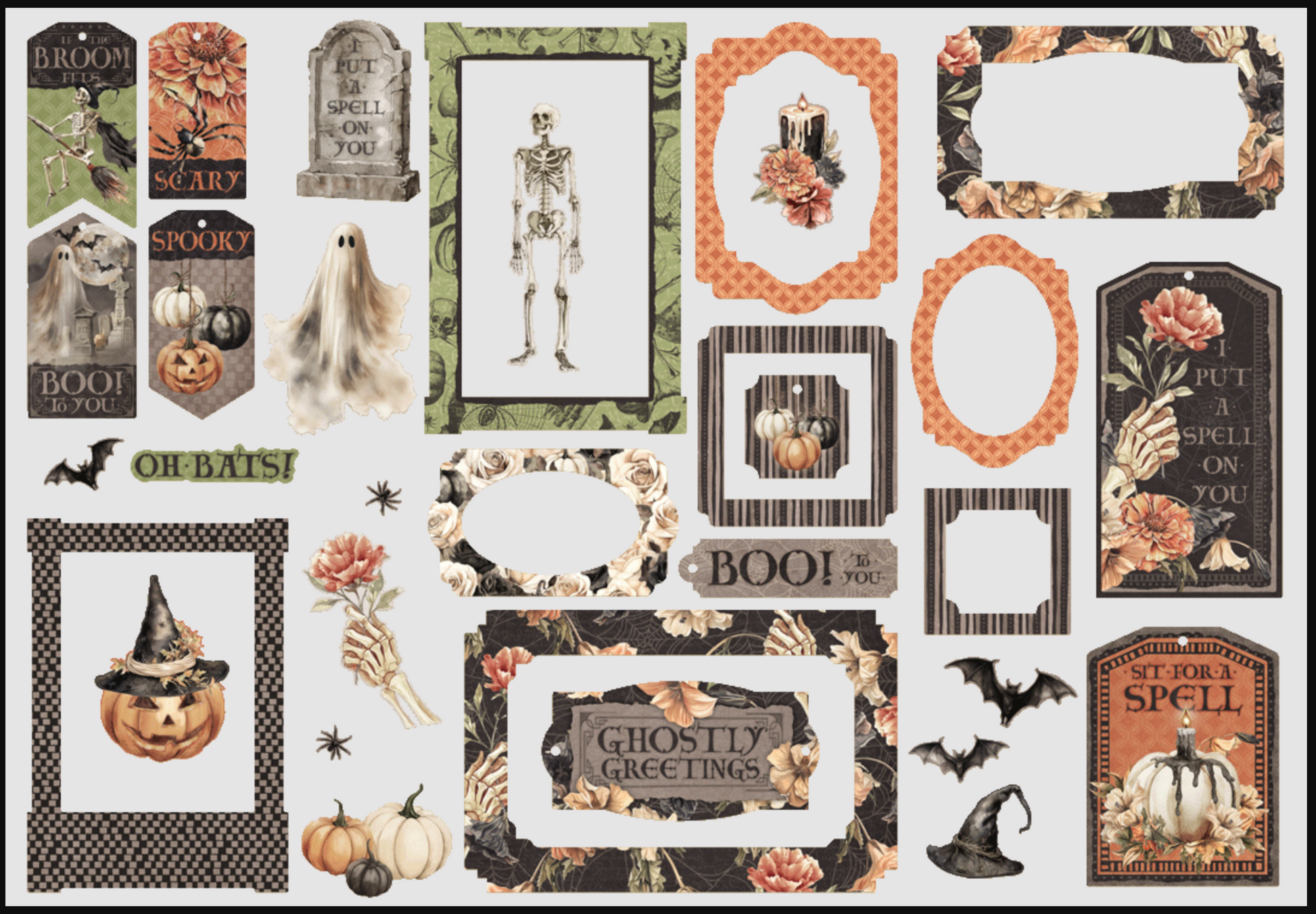 Graphic 45 Ghostly Greetings Chipboard Pieces, Tags & Frames