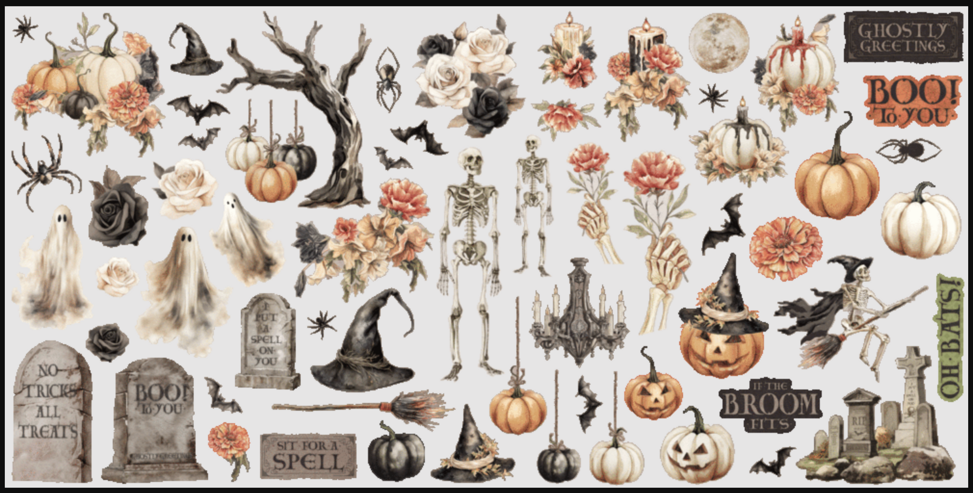 Whether you’re crafting Halloween cards, eerie mini albums, or decorating for a frightfully fun gathering, Ghostly Greetings casts a vintage spell of fall creativity.