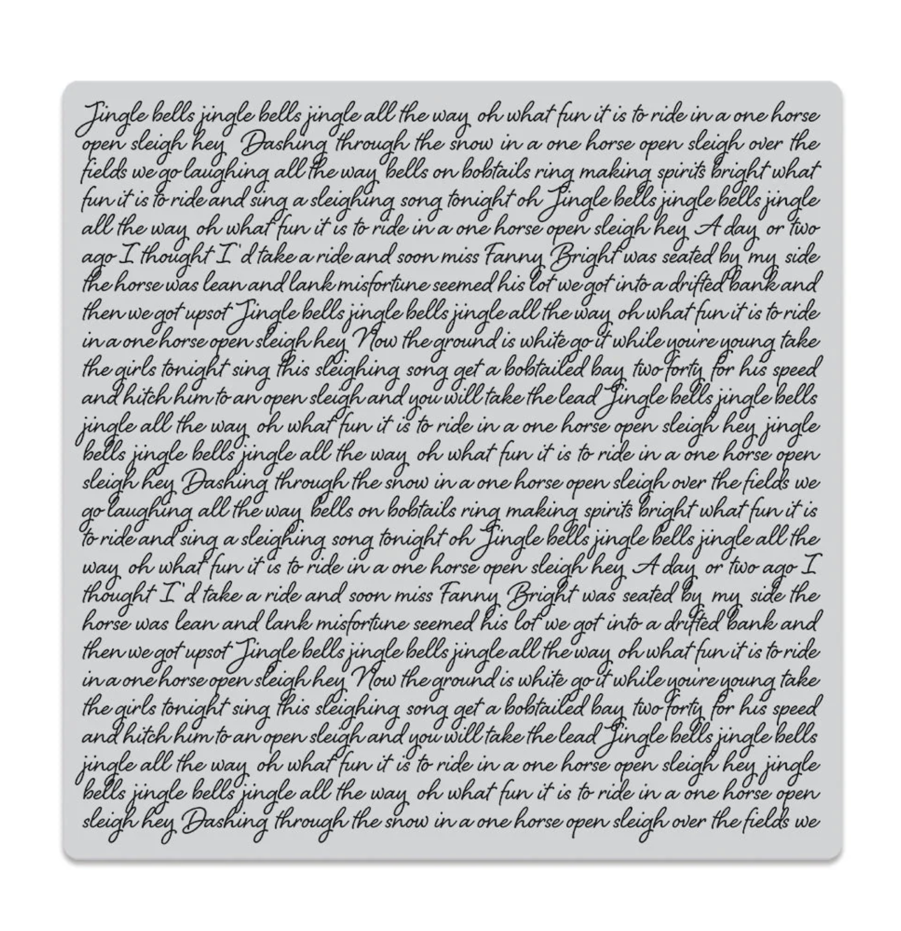 A fine script background filled with the lyrics from the song Jingle Bells. This stamp is perfect for your holiday cardmaking and crafting projects.