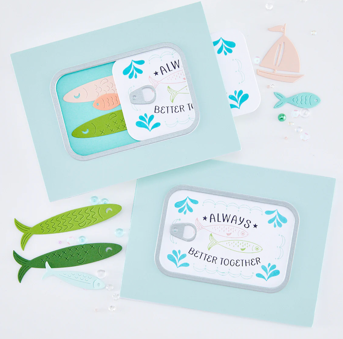 The Packed with Love Big Mouth Bundle brings together the Big Mouth Sardine Tin Die Set and the Big Mouth Slider Dies in one convenient package. Create delightful interactive cards with an opening sardine tin and smooth pull-tab action—all ready to wow your recipients.
