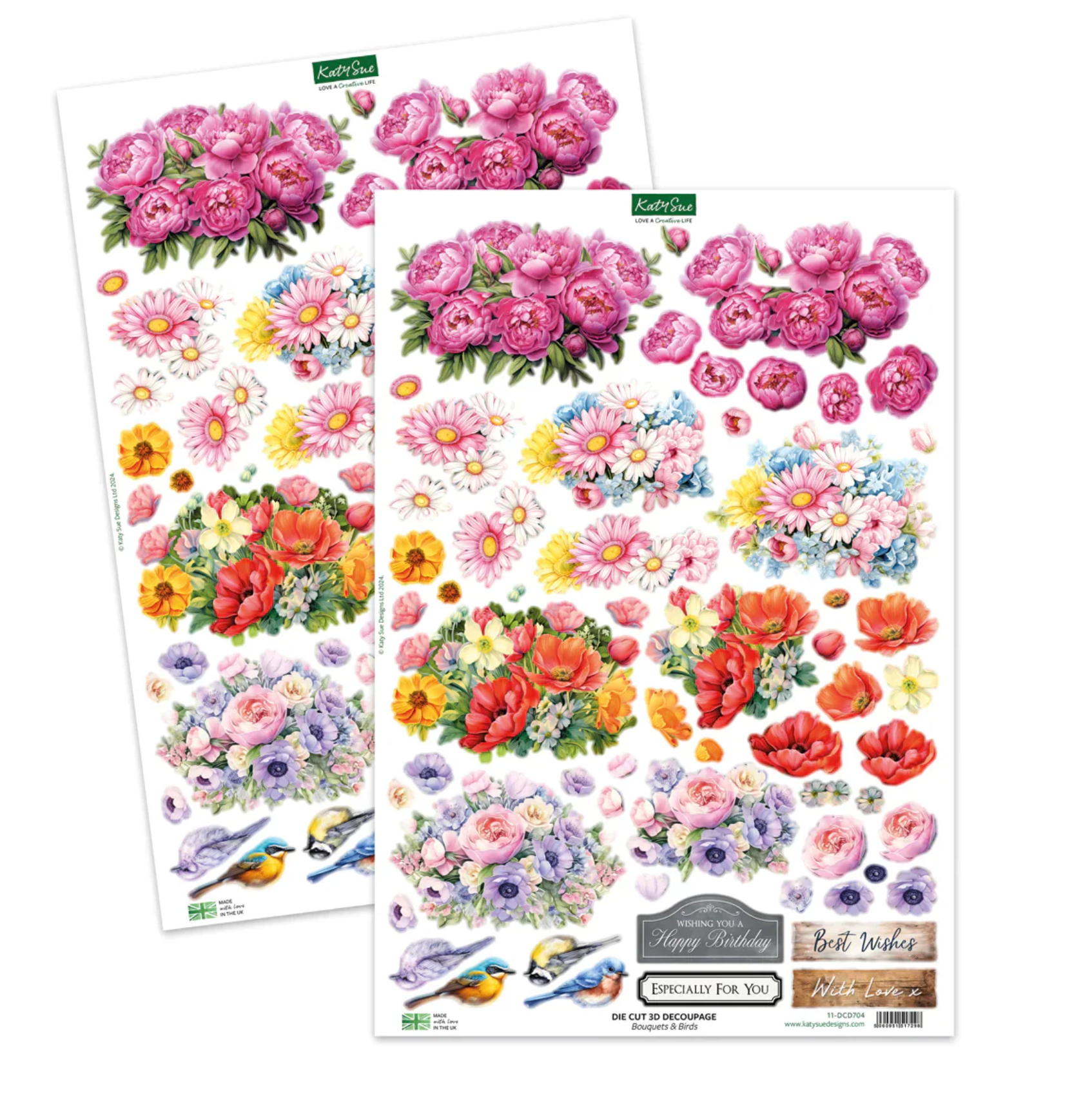 • 2 Sheets of Bouquets & Birds Decoupage