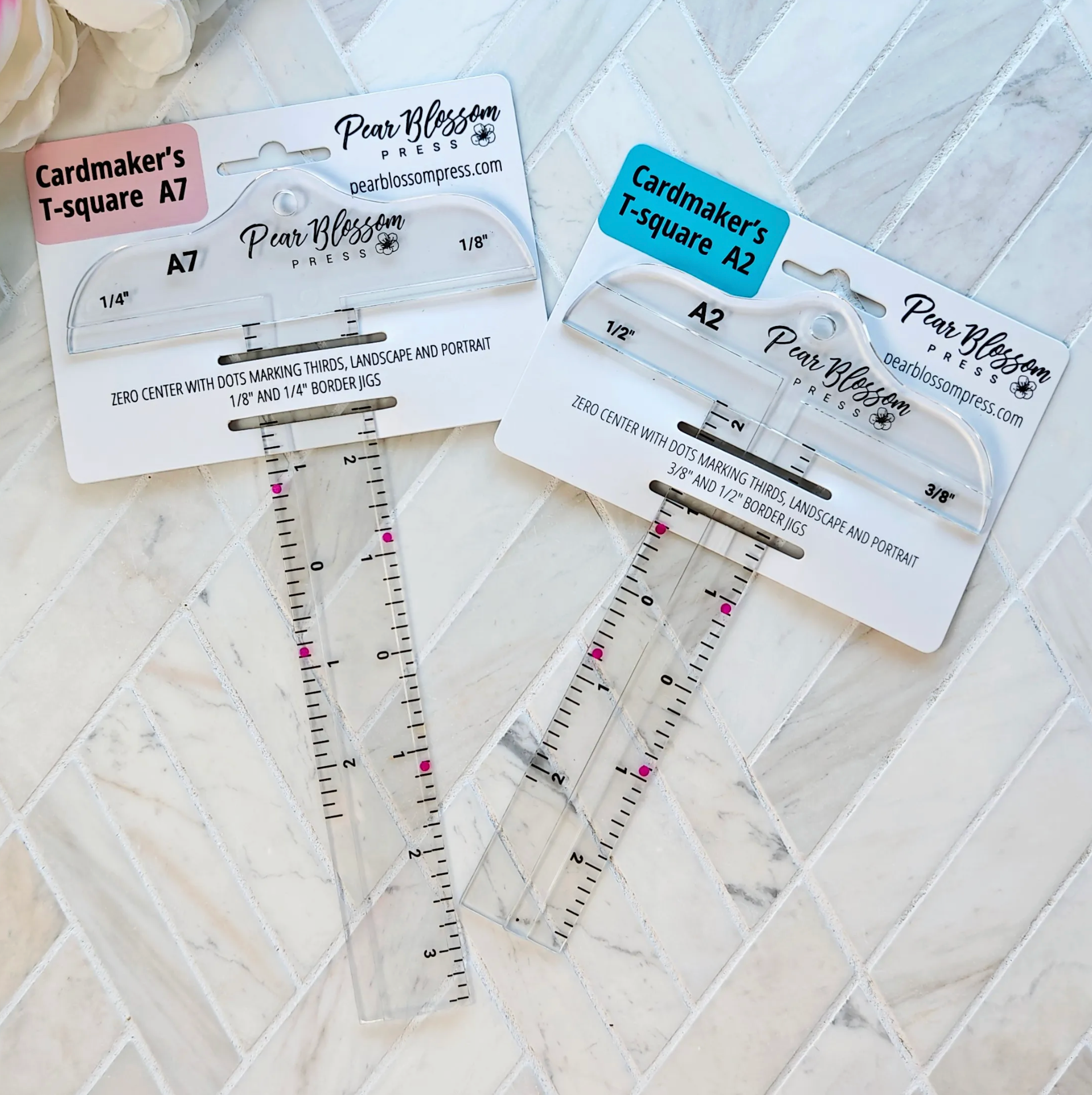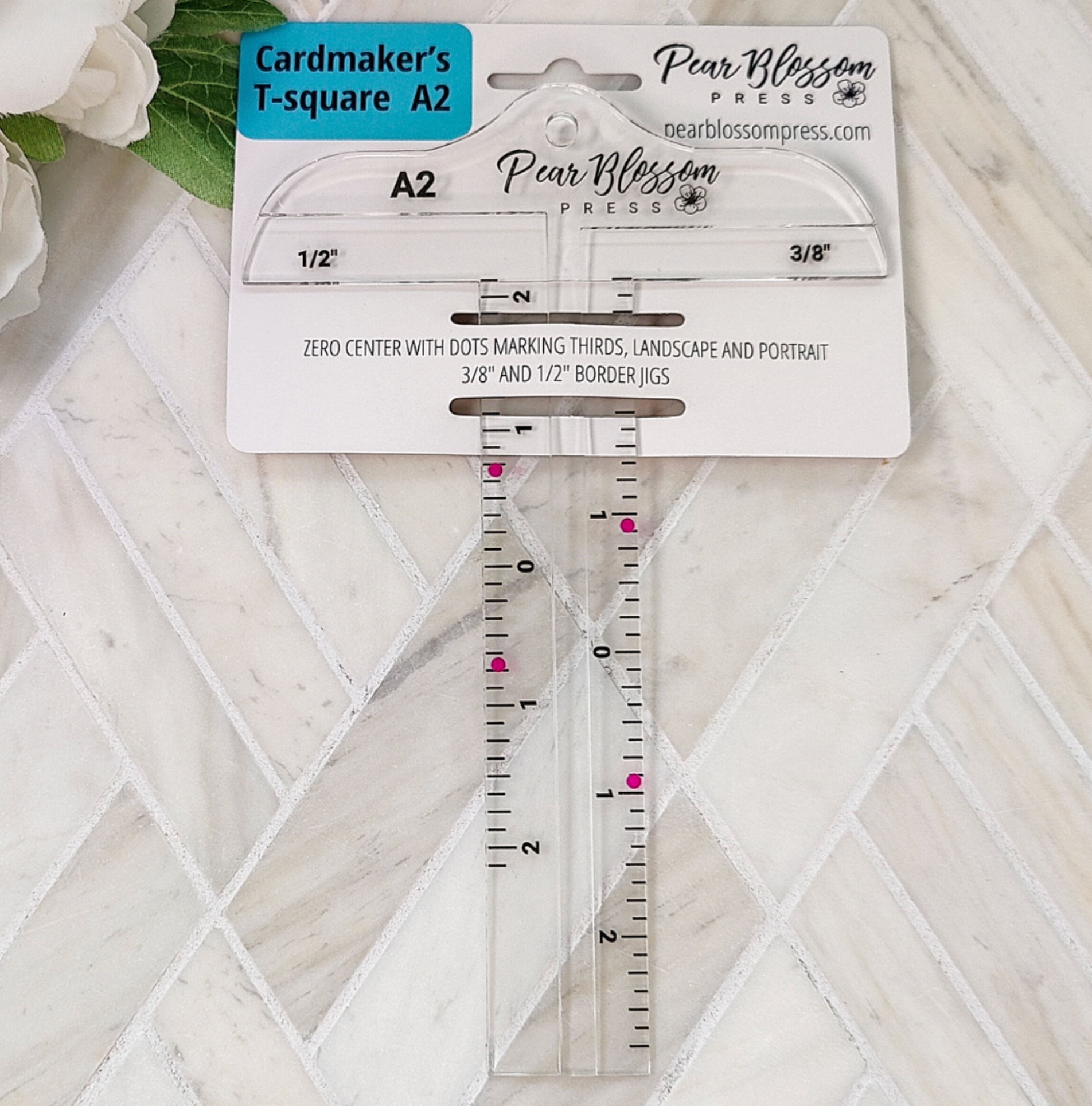 With a zero center and bright pink dots to mark thirds (both landscape and portrait), the Cardmaker’s T-square is the perfect tool for lining up images and sentiments! Available for A2 and A7 cards.