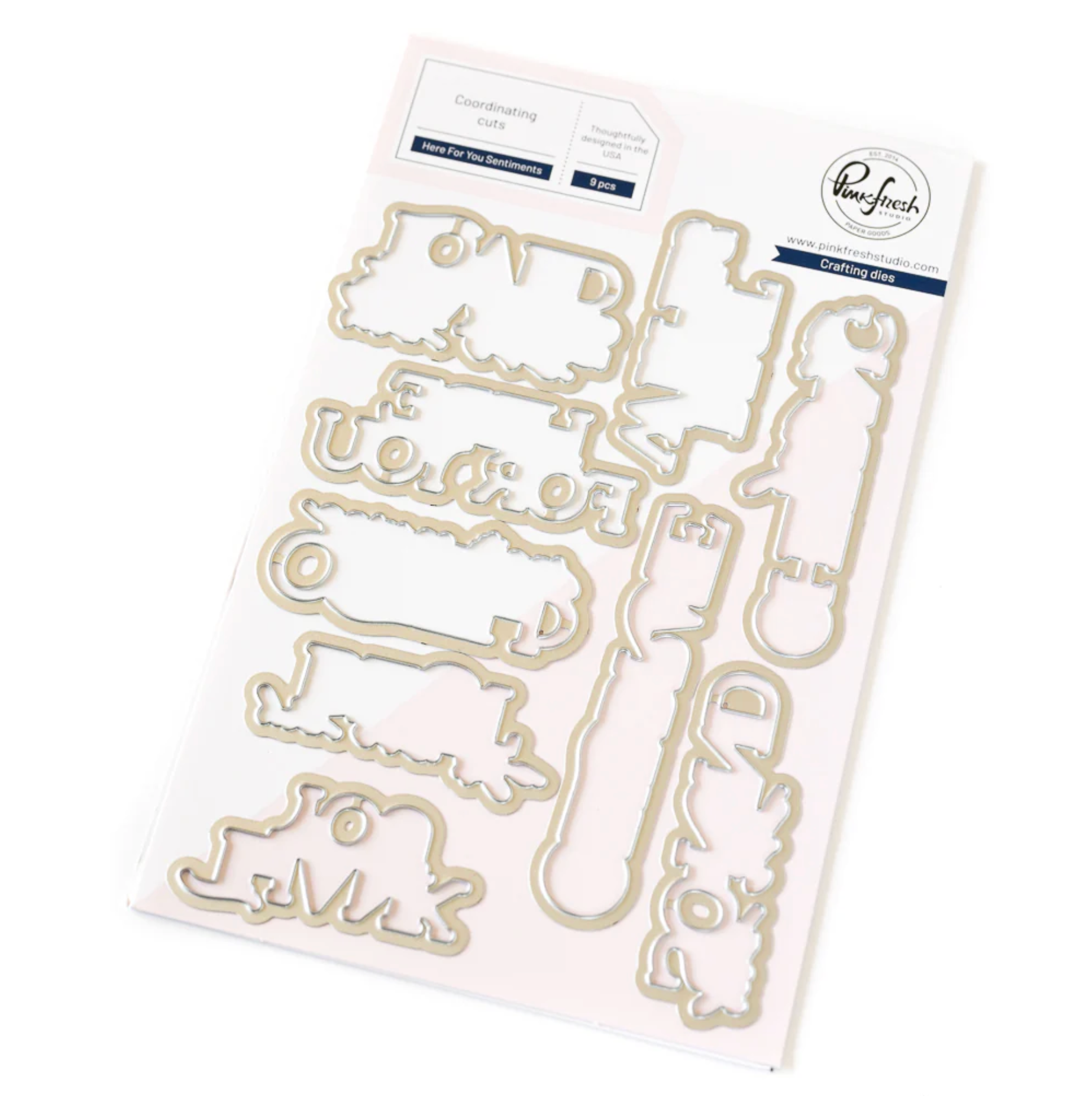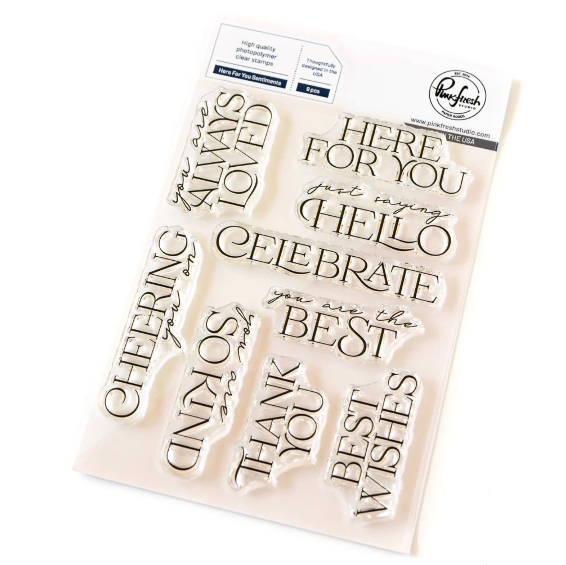 This elegant set of sentiments is going to be one you reach for time and again! Each sentiment offers that modern flair that you expect from Pinkfresh Studio with a mix of a larger bold font, paired with a delicate script supporting font. Stamp or heat emboss the sentiments, then easily cut each one out with its coordinating die.