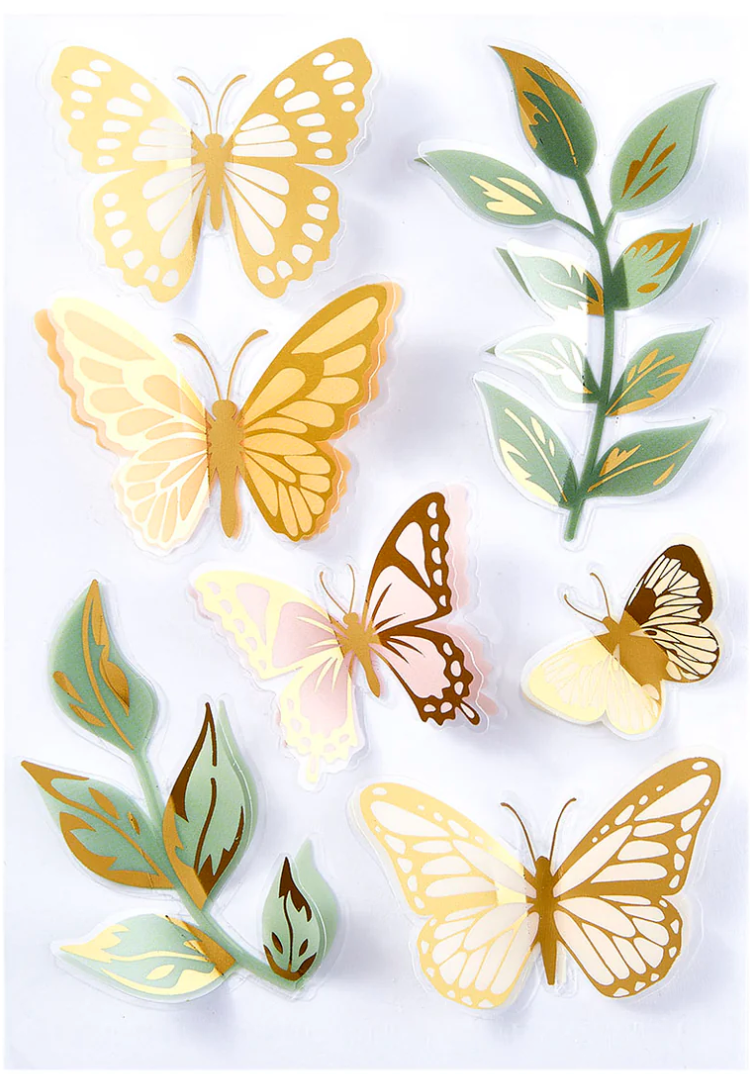 Rosie’s Studio - Golden Afternoon Butterfly Embellishments comes in a sheet full of stunning foiled butterflies and leaf accents. There are five different butterflies and two leaf motifs to choose from. These embellishments bring elegance and sparkly design to your projects!