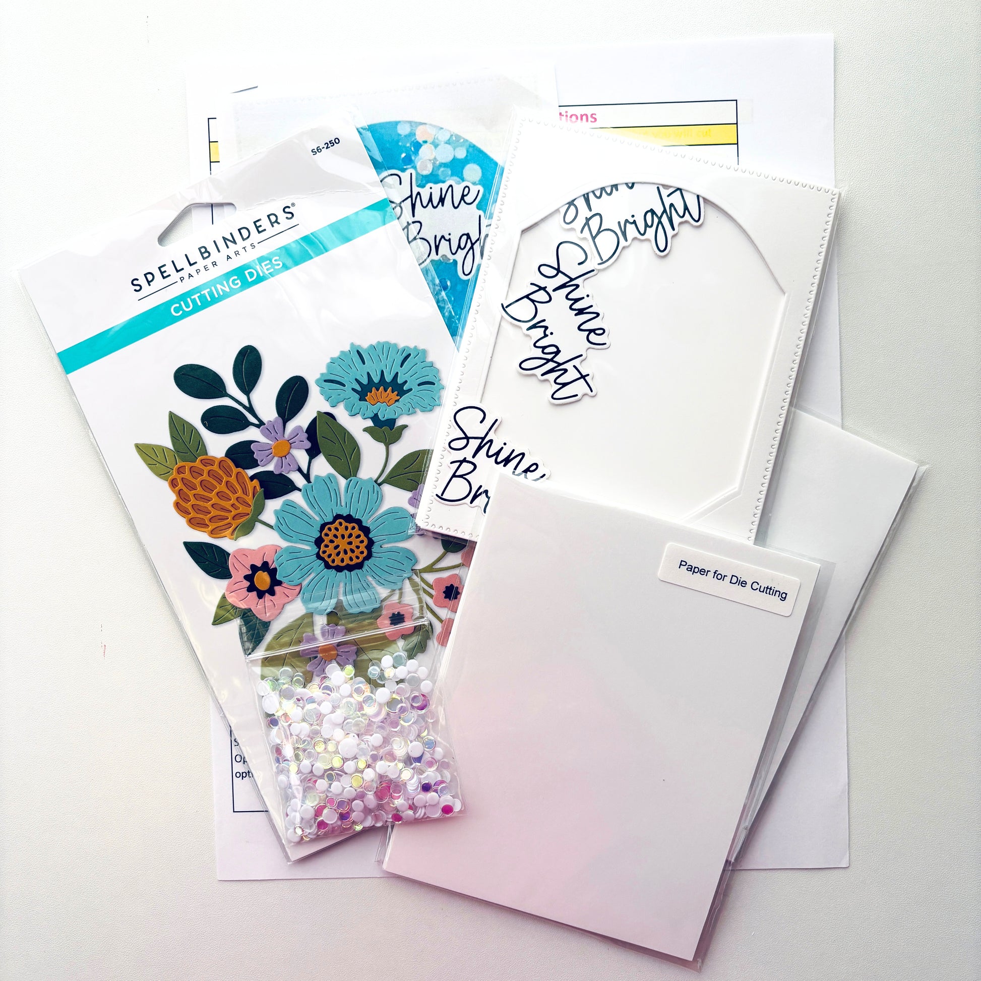 Kit includes the paper to create 3 floral shaker cards featuring the Vivid Blooms set. A private YouTube video tutorial is included along with a colored photo and instructions (includes a die cutting guide). Link for tutorial will be emailed after purchase.