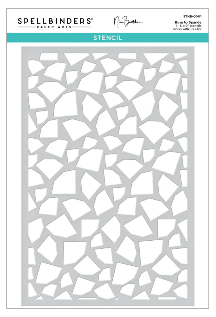 Born to Sparkle Emboss and Stencil Bundle is part of the Bougie Birthday Collection by Nina Boettcher. It includes E3D-122 Born to Sparkle Embossing Folder and the matching stencil. Note that the stencil is exclusive to the bundle and will not be sold separately. The 3D embossing folder is filled with floating gemstones! What a fabulous addition to bring luxury and perfect to mix and match with the other sets in this collection! Use the matching Diamonds Stencil to highlight each gem with inks, pastes and other mediums.