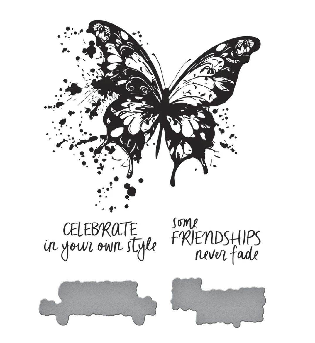 Butterfly Splatter BetterPress Plate & Die Set is part of the Beautifully Imperfect Collection. Impress a large and wonderful butterfly design with all its paint splatters... without any mess! The other two plates press sentiments athat can be cut out with coordinating dies to make them stand out. Ink the plates with the BetterPress Ink to be pressed against the BetterPress Cotton Card Panel and Sheets for a crisp letterpress design.