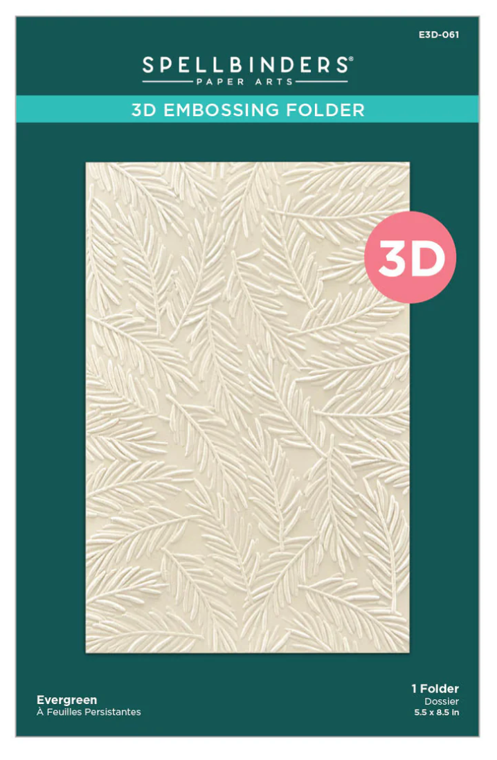 Evergreen 3D Embossing Folder is a 5.50 x 8.50-inch embossing folder with a background full of beautiful detailed evergreen branches and needles! What a wonderful backdrop for any holiday card creation.
