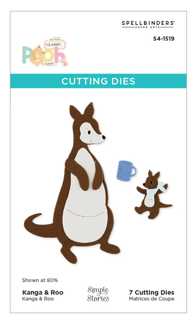 Kanga & Roo Characters Etched Dies are from the Say Cheese Classic Pooh Baby Collection with Simple Stories. Assemble this sweet Kanga and her little Roo with this set of seven thin metal cutting dies. It also comes with Roo’s bib and a cup to start you off. More accessory options can be found in Baby Accessories set.