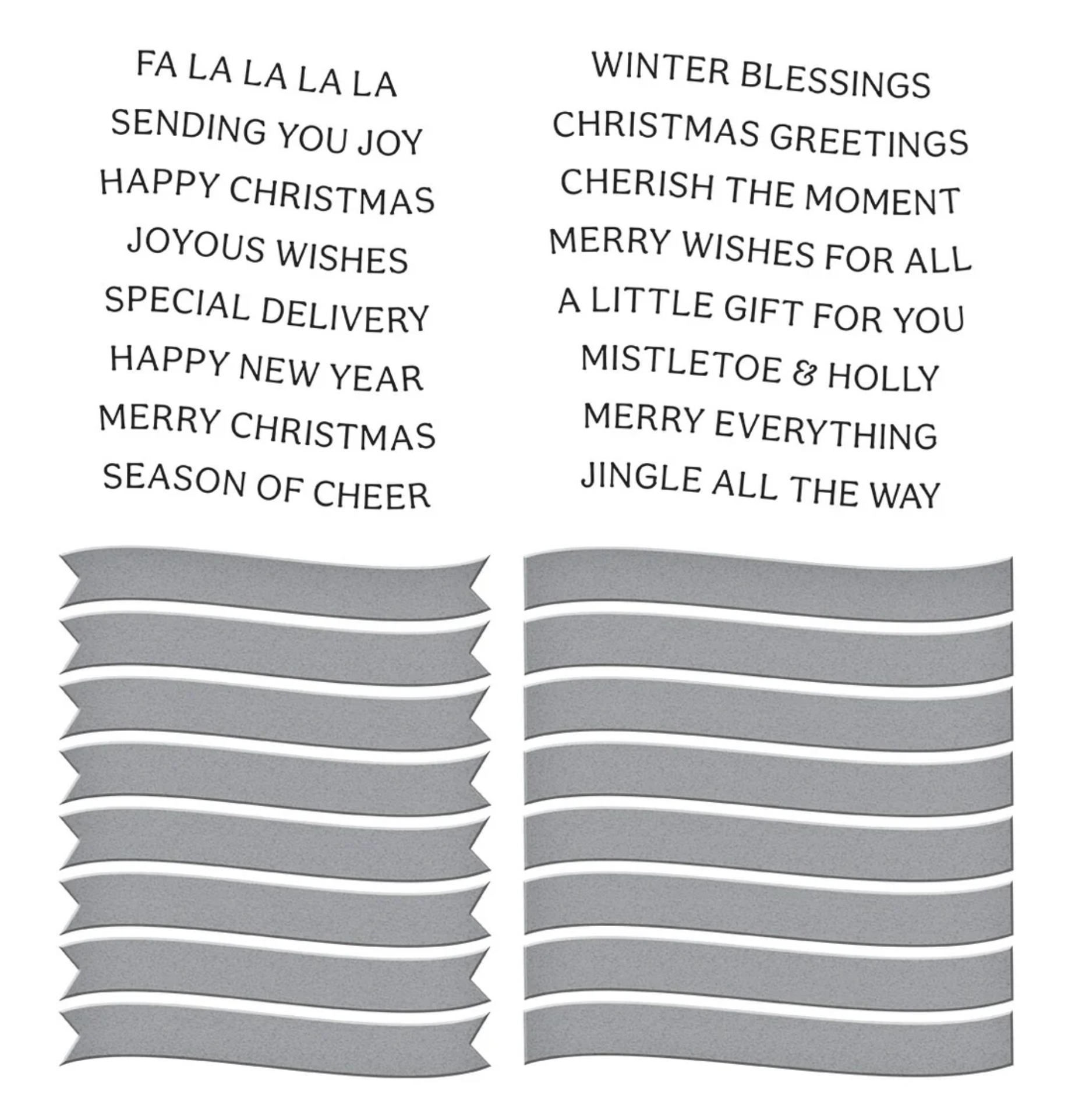 Mistletoe Greetings Press Plate & Die Set is part of the Home for the Holidays Collection. To save time, this set of two press plates each imprint eight fun holiday sentiments for a total of 16 greetings. Die-cut with a choice of two thin metal cutting dies: a slightly curved ribbon-tail banner or a slight curved sentiment strip. Gives your greeting a little movement too! Ink the plates with the BetterPress Ink to be pressed against the BetterPress Cotton Card Panel and Sheets for a crisp letterpress design.