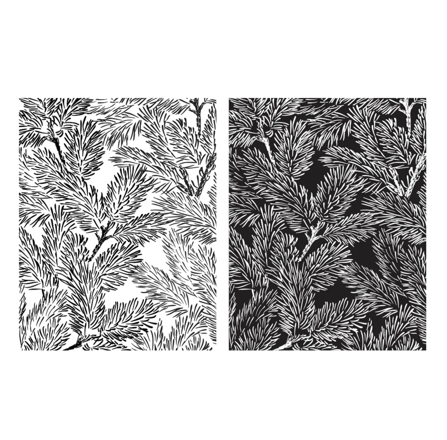 Night & Day Pines Press Plates are from the Home for the Holidays Collection. This set of two press plates gives you the option of playing with light against a stunning pine needle backdrop. One plate creates a daytime look, with colored branches against a white backdrop. The second plate highlights a dark background to give it a nighttime look, with white pine boughs. Ink the plates with the BetterPress Ink to be pressed against the BetterPress Cotton Card Panel and Sheets for a crisp letterpress design.