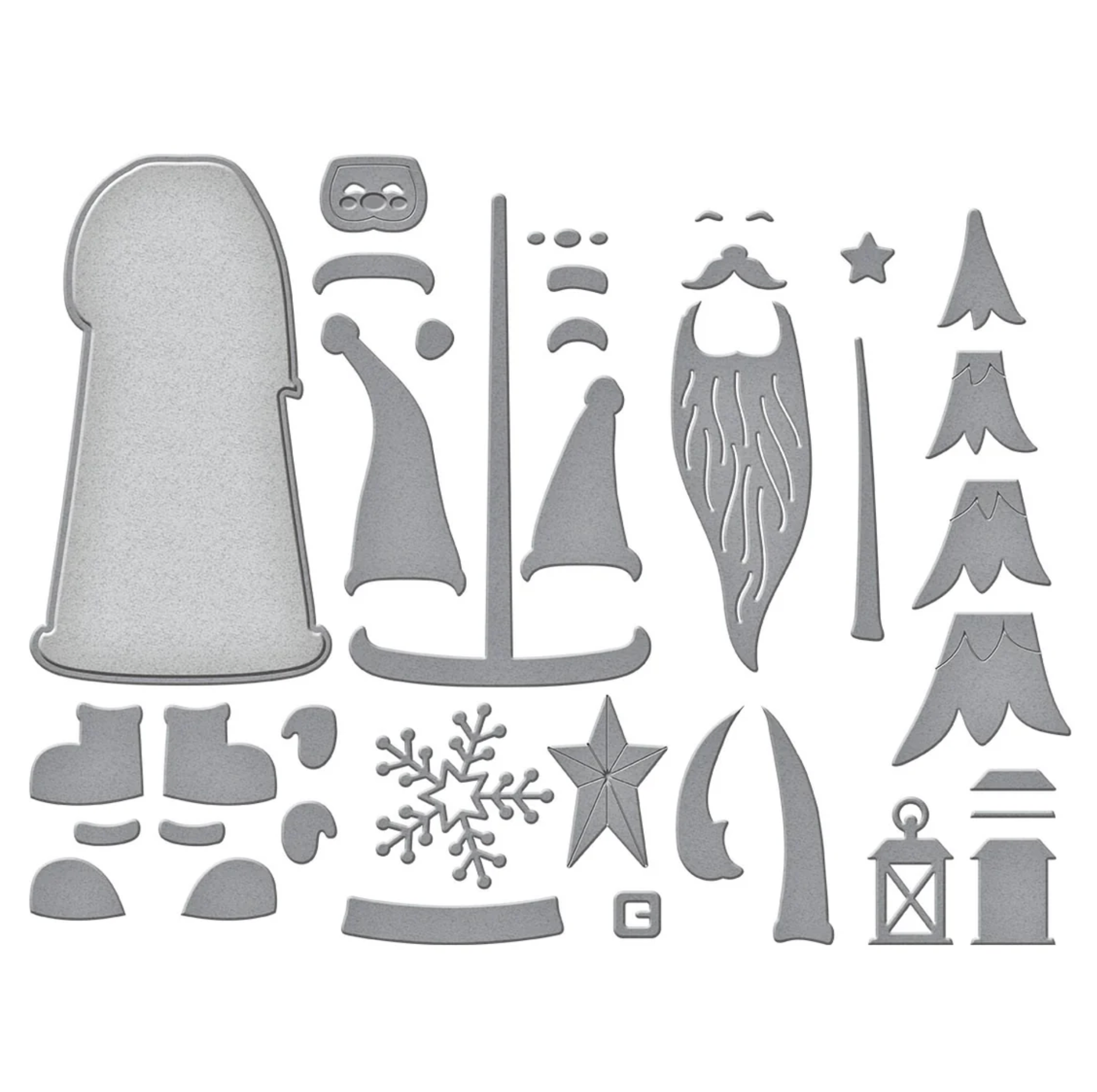 St. Nick Etched Dies are part of the Home for the Holidays Collection. If you collect Santas, this set of 15 thin metal cutting dies is for you! The set creates a Father Christmas-inspired design with all sorts of accessories such as a star, a Christmas tree, a lantern and more! A beautiful old world design to adorn your holiday cardmaking!